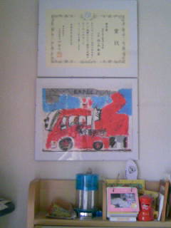 学校で書いた消防車の絵、表彰されました^^