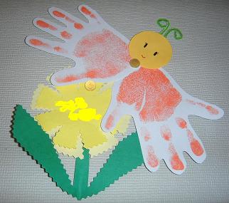 かななんの手形を羽にしたチョウチョがお花にとまっていてかわいいです^^