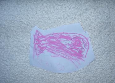 初めて描いた絵の周りをはさみで切り取るということをしてくれたのが、このお魚の絵です